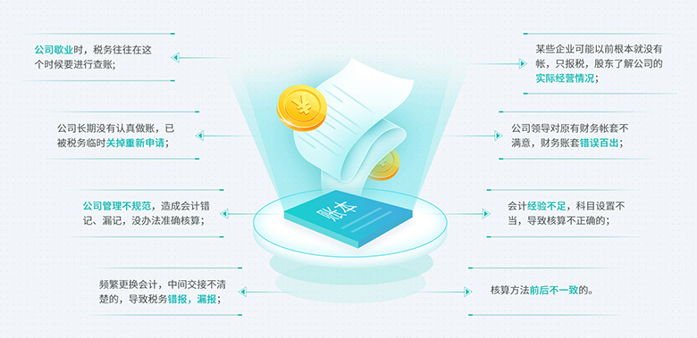 對(duì)混亂不清的亂賬、舊賬進(jìn)行清理和整理,為企業(yè)真實(shí)地反映清理會(huì)計(jì)期間的財(cái)務(wù)狀況和經(jīng)營(yíng)成果;為規(guī)避稅務(wù)風(fēng)險(xiǎn)、減少企業(yè)損失提供規(guī)范的會(huì)計(jì)信息;為企業(yè)向金融機(jī)構(gòu)融資和稅務(wù)辦理涉稅事項(xiàng)提供依據(jù)。(如客戶(hù)有特殊需求,專(zhuān)屬財(cái)稅專(zhuān)家可提供上門(mén)服務(wù))
